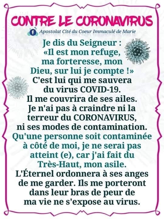 Au début de la pandémie, je me souviens d’avoir découvert un texte d’un groupe religieux ayant son siège en Afrique, dont des textes suggéraient que ses membres étaient protégés contre le coronavirus, car celui-ci ne saurait atteindre ceux qui s’étaient confiés dans le Seigneur. Je reproduis ci-contre ce texte. Mais dès le mois suivant, le 6 avril 2020, le même groupe proclamait que « le confinement n’est pas une simple mesure contre le Covid 19 », mais « un ordre prophétique et divin pour notre protection et notre salut ». C’est un bon exemple de l’alignement sur les impératifs sanitaires qui a traversé la plupart des courants religieux durant cette période, malgré les débats qui ont pu se produire avant l’entrée en vigueur des mesures, puis ensuite quand il s’est agi de savoir à quel rythme revenir à la normale.